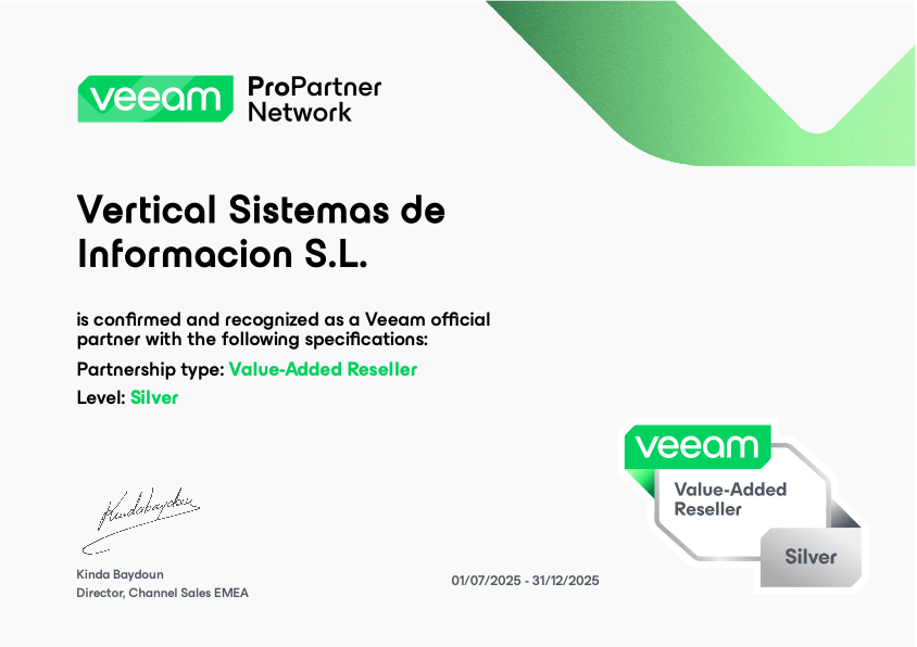 Con la certificación Veeam Silver ProPartner, reforzamos nuestra posición como socio tecnológico de confianza para empresas que buscan seguridad, fiabilidad y una gestión de datos de alto nivel.